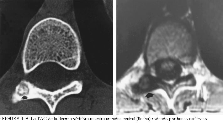 - osteoma osteoide de la columna: (figura 1-A y 1-B)